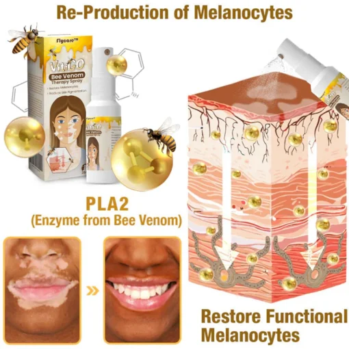 By promoting the proliferation of melanocytes, the Flycare™ VitiGO Bee Venom cream hold potential for stimulating repigmentation and restoring natural skin color in individuals affected by vitiligo.