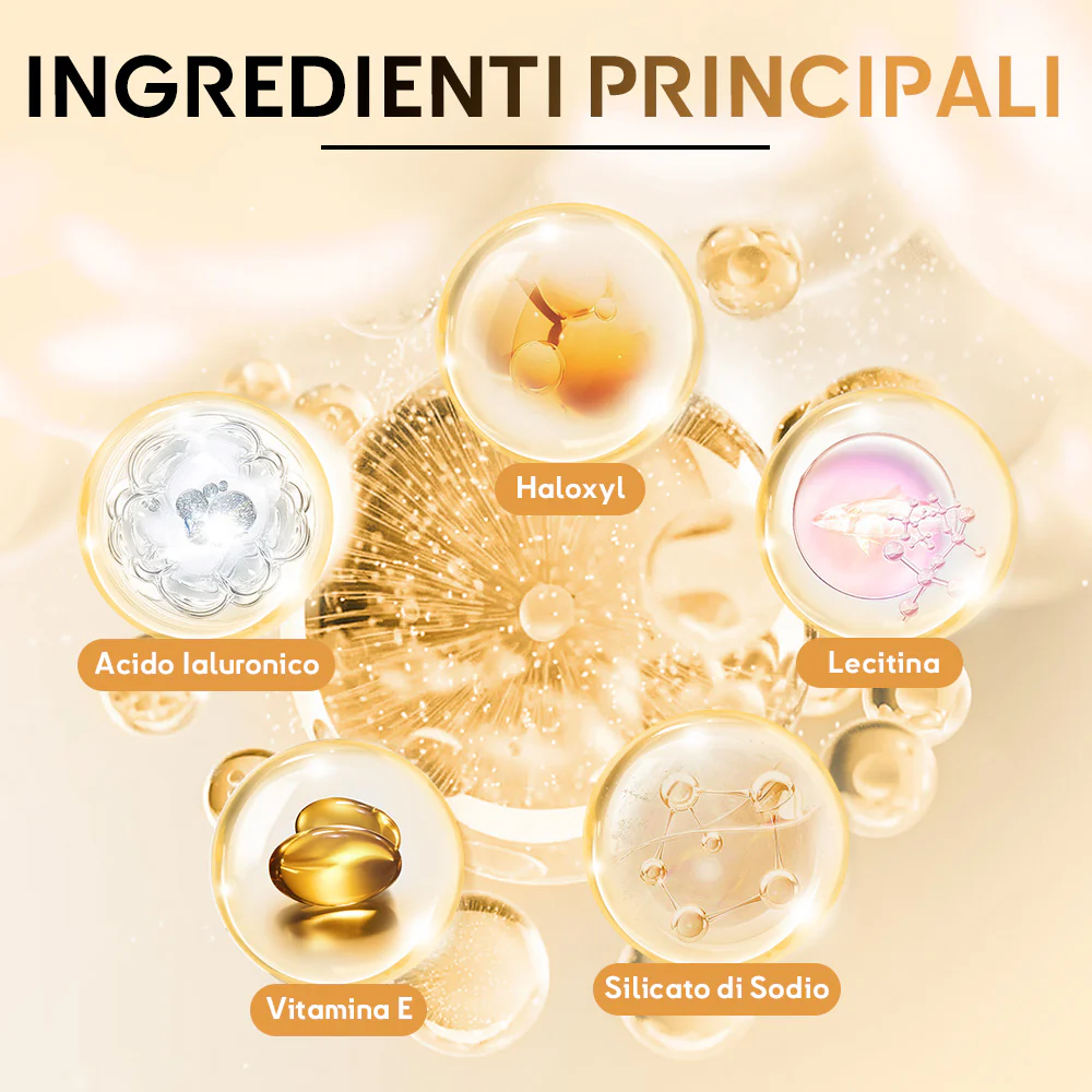 Scoprite il segreto di uno sguardo giovane con il nostro rassodante occhi temporaneo e istantaneo. La nostra formula rivoluzionaria è una miscela di sei ingredienti attivi per la cura della pelle, tra cui il silicato di sodio, l’acido ialuronico, il collagene idrolizzato, la lecitina, la vitamina E e l’aloxil, specificamente formulata per combattere le borse sotto gli occhi, le occhiaie e il rilassamento cutaneo.