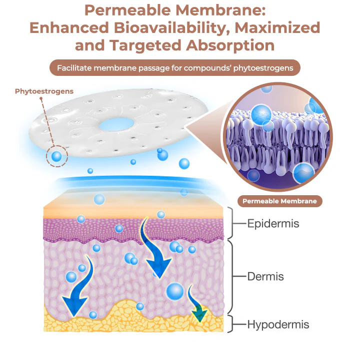 The objective of the Flysmus™ CurvesSculptor Enhancement Patch is to facilitate the passage of ingredients through the membrane, particularly focusing on enhancing the permeability of phytoestrogens. Additionally, the technology prioritizes consistency and thorough penetration, aiming to preserve the purity and efficacy of the ingredients throughout the entry process and potentially thereafter.