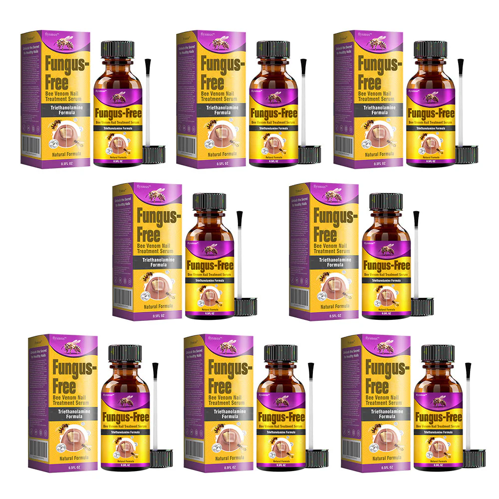 The Fungus-Free serum features a powerful formula enriched with bee venom, which contains peptides and proteins with strong antimicrobial properties. These bioactive compounds effectively target and inhibit the growth of various microorganisms, including fungi, by disrupting their cellular structures and interfering with their metabolic processes. This provides a potent solution for maintaining healthy, fungus-free nails.