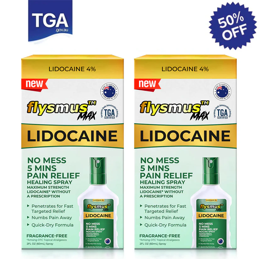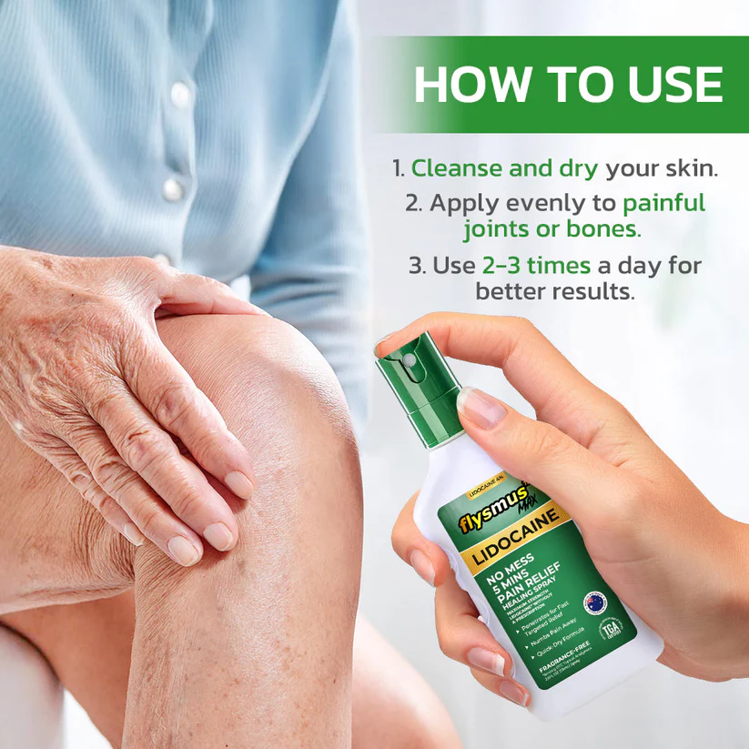 Enjoy quick and lasting relief with flysmus™ Lidocaine 5Mins Pain Relief Healing Spray.