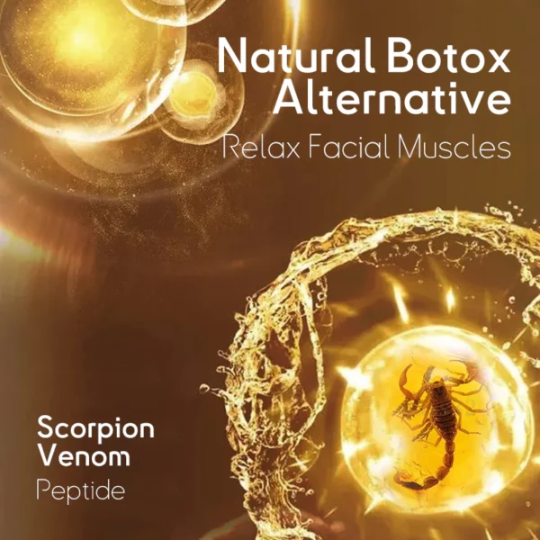 The flysmus™ Natural Vitality Scorpion Venom Essence component of scorpion venom is believed to act as a firming agent for loose skin muscles. Scorpion venom peptide is a peptide found in scorpion venom, known to inhibit the release of specific neurotransmitters. Through this inhibitory effect, scorpion venom helps alleviate muscle tension, leading to muscle relaxation. This has a significant impact on slowing the formation of wrinkles and giving the skin a smoother and more youthful appearance.