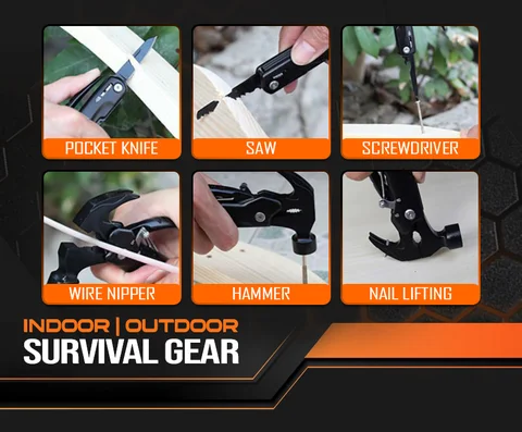 The Multi-Tools Claw Hammer is ideal for camping, car emergency fix, and workshops. It can easily cut, pry, twist screw, saw wood, and more.
