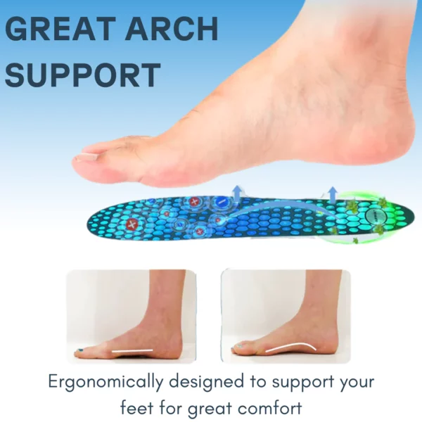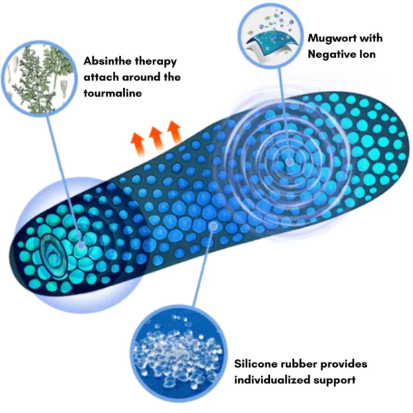 The center layer of the insole includes tourmaline (a precious natural mineral), which stimulates the blood vessels in the toes and feet through acupressure, improving blood circulation, lowering hunger, and calming the body. It is cleverly developed to give foot comfort in any scenario. It eliminates foot pressure and gives cooler comfort compared to ordinary insoles.