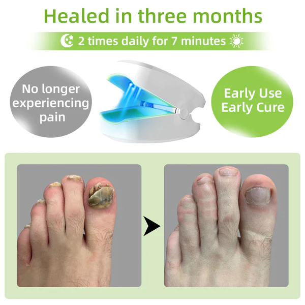 “Months of battling a stubborn toenail fungus left me frustrated. Then, I stumbled upon a laser treatment device and decided to give it a try. On the first day, I used it multiple times, not expecting much. The next morning, I was stunned. The darkened color of my nail had begun to fade. After a week of consistent use, the transformation was undeniable. My nail looked healthier and clearer, showing signs of new growth. It was a simple yet effective remedy that worked wonders without any additional ointments or oils – Cassidy Lewis
