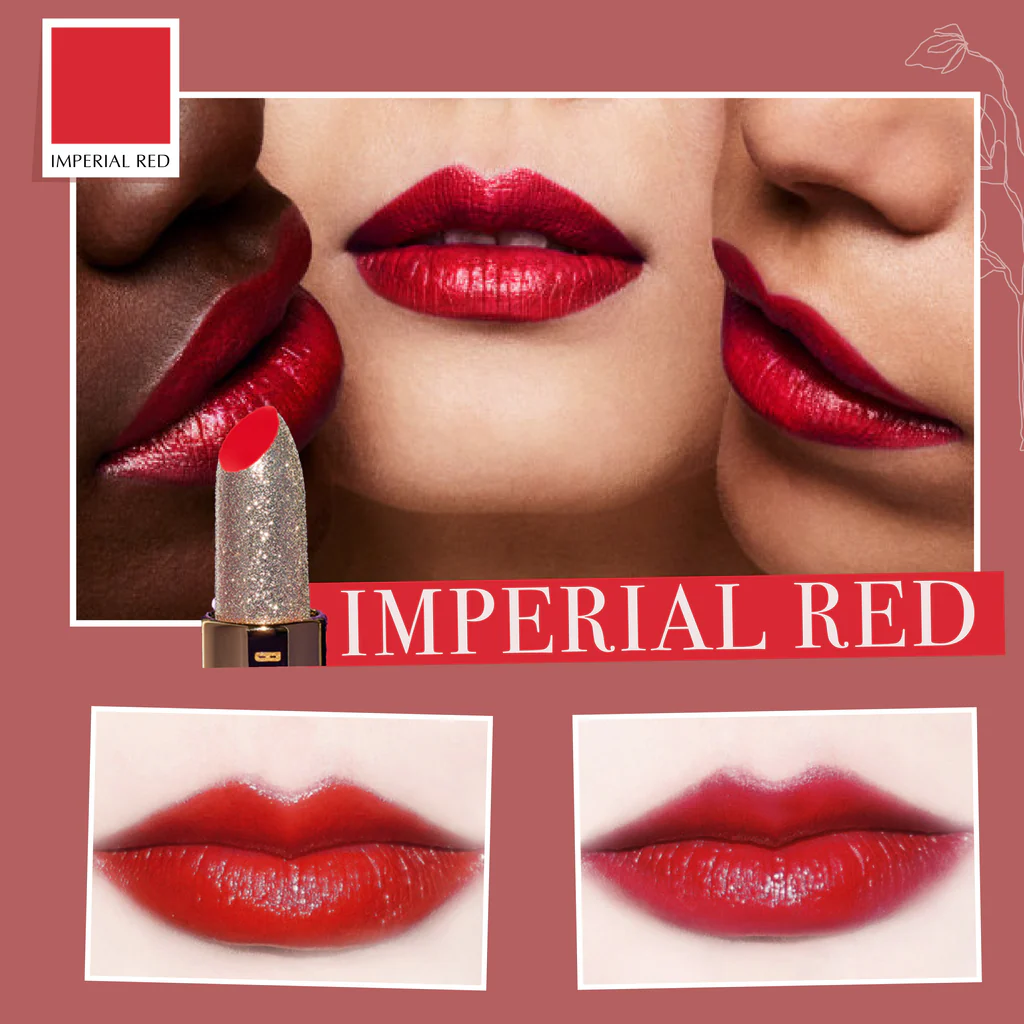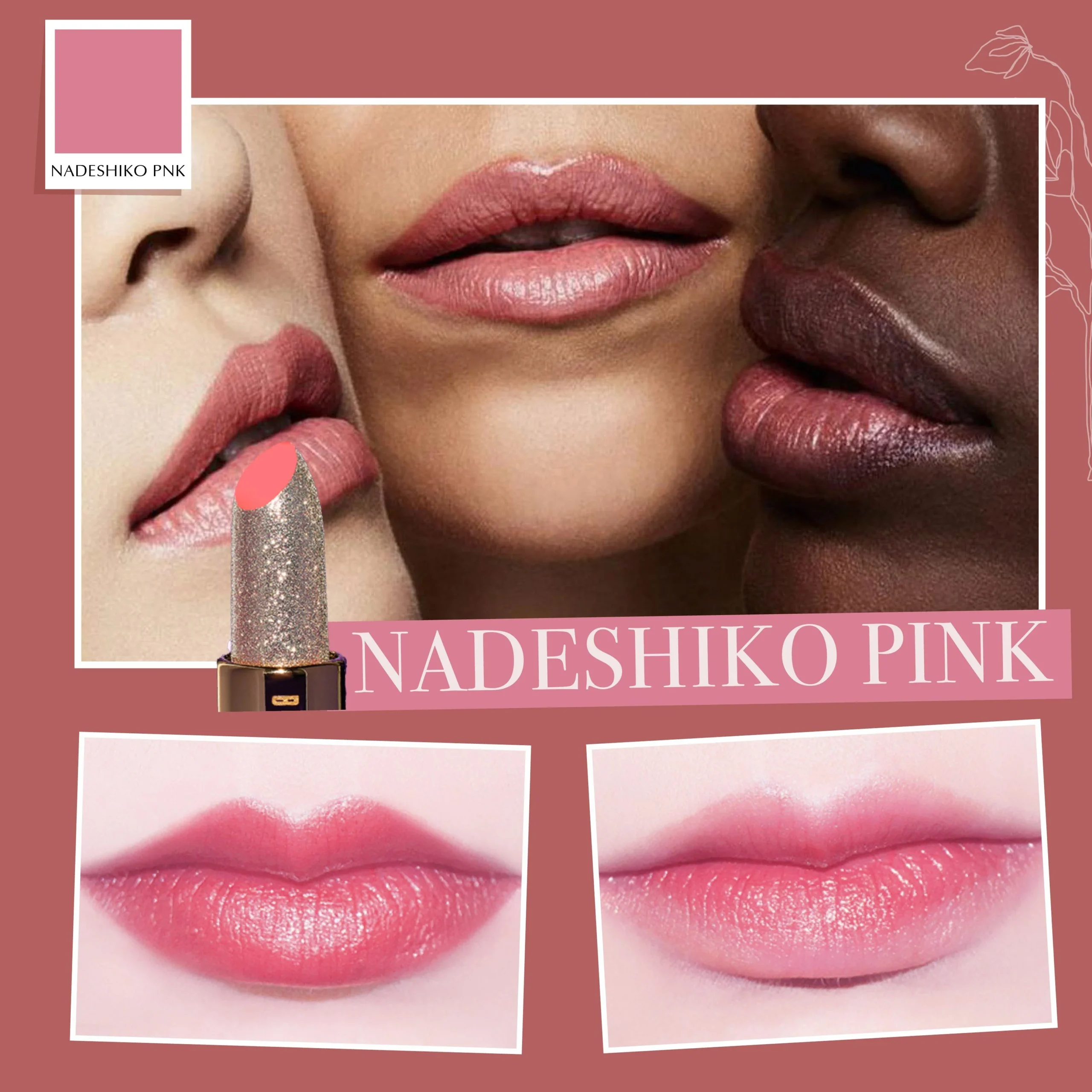 A smooth and silky lipstick, enriched with light-reflecting, high-shine glittery effect. It is lightweight and moisturizes lips while giving them sophisticated shine and rich, stunning color for subtle everyday glamour. Very long-lasting and waterproof, doesn’t come off easily even when you drink so no need to do much touch ups.