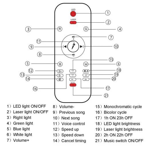 Package includes: 1 x LED Projection Light, 1 x Remote Control(Battery not included), 1 x USB Cable, 1 x User Manual