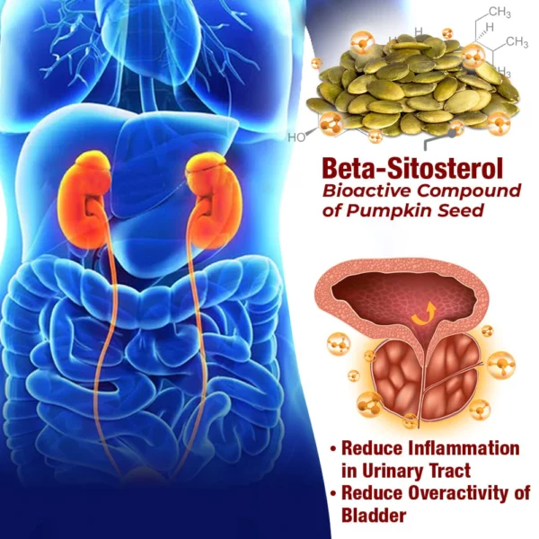 The GFOUK™️ VitalForce Masculine Wellness Patch is formulated with a potent ingredient—pumpkin seed. Pumpkin seed is known for its remarkable properties in addressing urinary health concerns. Pumpkin seeds boast a rich content of beta-sitosterol; they have anti-inflammatory and antioxidant properties, potentially helping to reduce inflammation in the urinary tract and improve urinary health issues.