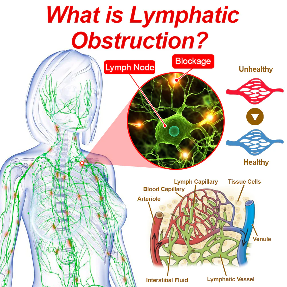 Lymphatic blockage is a common health issue that leads to the accumulation of toxins in the body, triggering a range of adverse reactions. One of these is the buildup of body fat and swelling. When lymph flow is obstructed, toxins aren’t efficiently cleared but instead linger in tissues, impairing cellular function and slowing down metabolism, increasing the risk of weight gain and swelling.