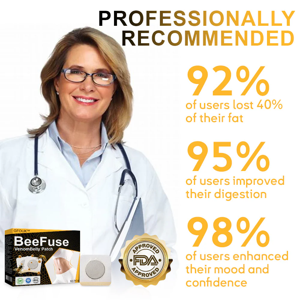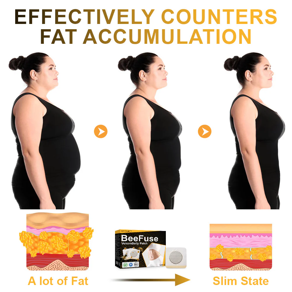 The GFOUK™ BeeFuse VenomBelly Patch offers a practical and effective solution for fat-related issues. By combining bee venom with an upgraded silicone patch, it effectively reduces abdominal fat, promotes digestion, and prevents future fat accumulation, thereby reducing overall body fat.