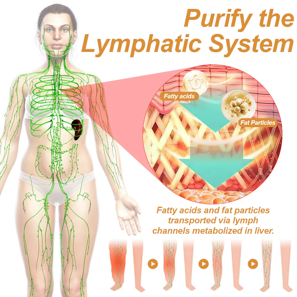 During weight loss, the lymphatic system absorbs and transports metabolic byproducts and toxins from fat cells to lymph nodes, aiding detoxification. It also removes excess fluid and waste from fat cells, preventing water retention and swelling. Fatty acids and fat particles transported through lymphatic channels are metabolized in the liver, providing energy for bodily activities and aiding fat burning.
