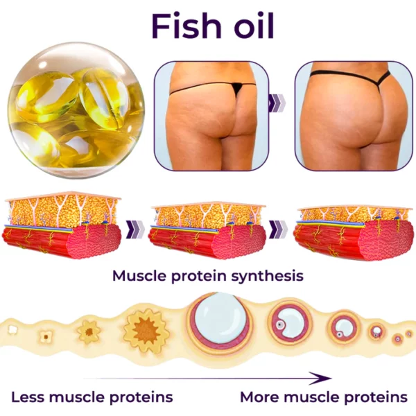 Fish oil works wonders for butt muscle health, and its abundance of omega fatty acids can significantly contribute to increasing your butt size. It promotes muscle protein synthesis and helps prevent muscle breakdown, allowing your butt to build new muscle proteins for a firmer and more lifted appearance.