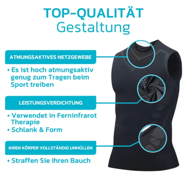 Die Weste besteht aus einem atmungsaktiven und dehnbaren Material, das einen hohen Tragekomfort gewährleistet und eine ungehinderte Bewegung ermöglicht. Das Design umfasst eine Kompressionsschicht, die zur Straffung und Stärkung der Brustmuskulatur beiträgt und das Potenzial für eine verbesserte Körperform durch kontinuierliche Nutzung bietet.