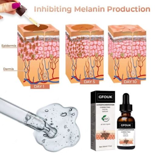 GFOUK™ Hyperpigmentation Correcting Facial Serum contain active ingredients that help to lighten hyperpigmentation by reducing the production of melanin in the skin, breaking up existing melanin clusters, and promoting the growth of new, healthy skin cells.