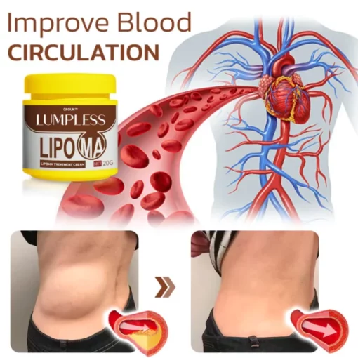 Lipomas are recognized for their potential to obstruct venous flow and cause symptoms through compression. GFOUK™ Lumpless Lipoma Treatment Cream assists in alleviating this issue, facilitating better blood circulation by relieving pressure on the affected veins. It aids in enhancing overall circulation and reducing the strain on the veins.
