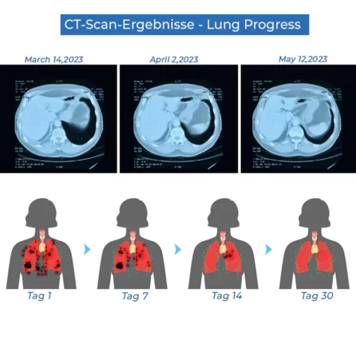 Nach einer sorgfältigen Analyse der CT-Scans, die vor und nach dem Test durchgeführt wurden, ergab sich eine bemerkenswerte Erkenntnis: Die Rückstände in der Lunge der Probanden hatten eine bemerkenswerte Verringerung erfahren, die mit einer außergewöhnlichen Verringerungsrate von 99,94 % fast nicht mehr wahrnehmbar war.