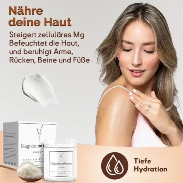 Sie ist reich an Magnesium, einem wichtigen Nährstoff, den Ihre Nerven für ihre Gesundheit benötigen. Wenn Sie unsere Lotion anwenden, versorgen Sie die schmerzenden Stellen mit dem notwendigen Sauerstoff und der Pflege, die Ihre Nerven brauchen.