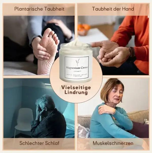 Klinische Studien (einschließlich in PubMed veröffentlichter Versuche) haben eindeutig gezeigt, dass Magnesium eine entscheidende Rolle bei der Linderung von Nervenschmerzen spielt. Es hilft, die Nerven zu entspannen, Entzündungen zu reduzieren und das Kribbeln und Brennen in Händen und Füßen zu lindern.