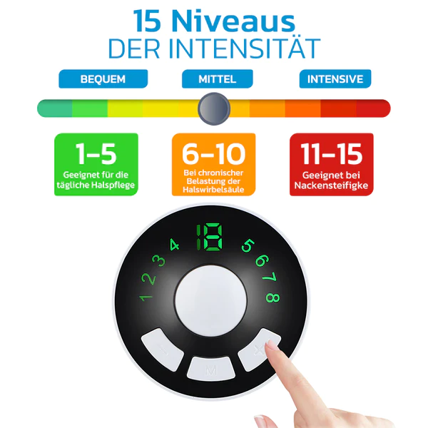 ✔ Nutzt die TENS-Technologie zur gezielten Stimulation von Akupunkturpunkten am Hals