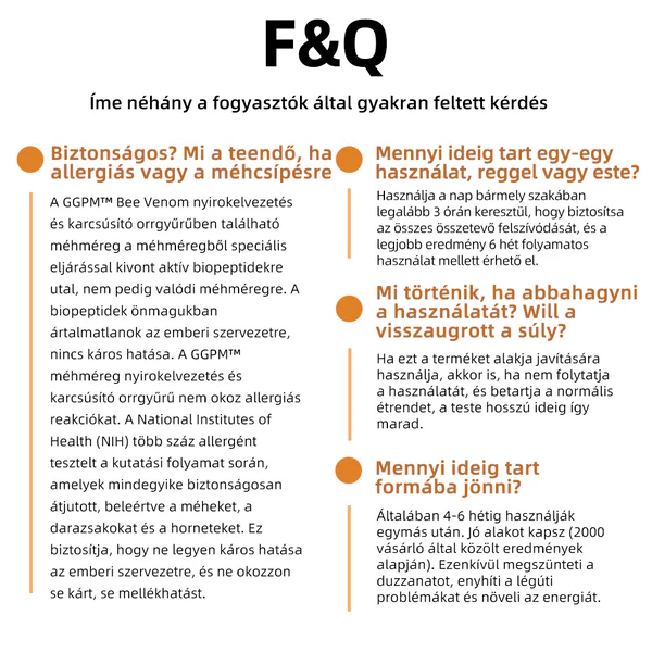 Ez a termék valóban kivételes. Önző lenne tőlem, ha nem osztanám meg az előnyeit. Régen, a szoptatás alatt túlzott étkezés miatt elhíztam, és nehézségeim voltak a felesleges zsír leadásával. Sokáig nem fordítottam rá sok figyelmet. Azonban nemrégiben észrevettem, hogy a súlygyarapodásom elérte elviselhetetlen szintet, ami fáradtsághoz és nehézlégzéshez vezetett a felesleges súly miatt. Elkezdtem használni a GGPM™ Méhméreg Limfatikus Drenázs & Karcsúsító Orrgyűrűt, és betartottam a javasolt napi használatot. Az első használat után azonnal éreztem, hogy a légzésem javul. Ez majdnem csodálatos… Alig több mint egy hónap alatt közel 75 fontot fogytam. Szeretném megosztani ezt a történetet mindenki másnak, mert tudom, hogy mások is átélhetik, amit én átéltem. A kipróbálás sok fájdalomtól és kínzástól mentett meg. Legfontosabbként, megfizethető! ——Anna Kovács