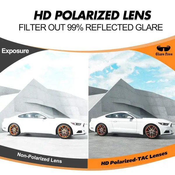 Feel fearless in the sun with full UV protection. Gradient Polarized Sunglasses block 99.99% harmful UVA/UVB, UVC or blue light, etc. Polarization tested to have no optical distortion which can cause eye strain and headaches.