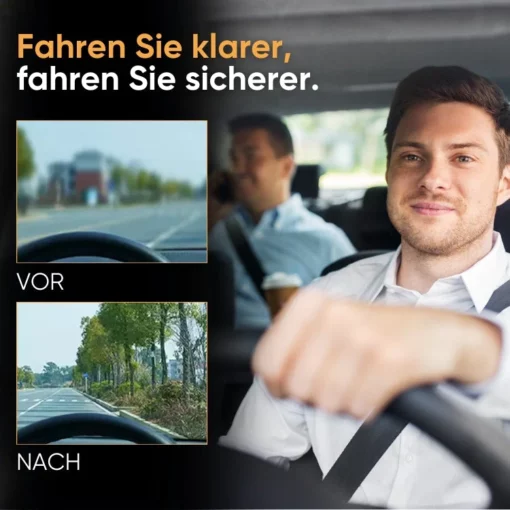 Sichereres Fahren: Erreichen Sie unvergleichliche Klarheit, indem Sie mühelos den Glasölfilm entfernen und eine transparente Sicht ohne einen einzigen Wassertropfen gewährleisten.