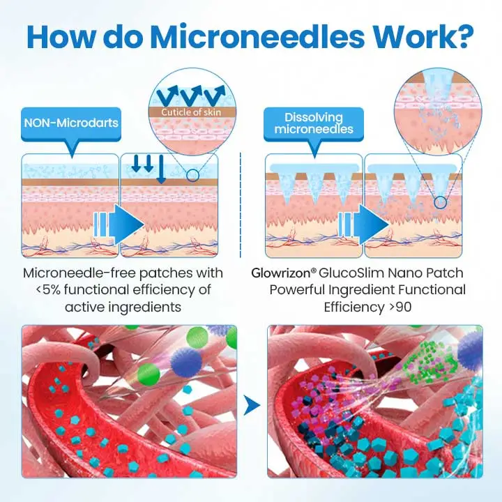 Delivered through the GLOWRIZON® GlucoSlim Nano Patch using advanced nano-microneedle technology, this potent compound is absorbed steadily and efficiently, offering users a reliable and holistic approach to health management.