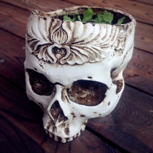 This potted plant is very suitable for decorating your home: durable and artistic, corrosion-resistant skull-shaped flowerpot carvings, floor-standing exquisite details and excellent hand-made.
