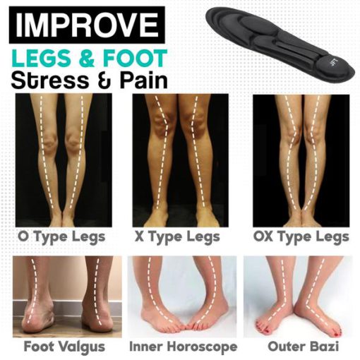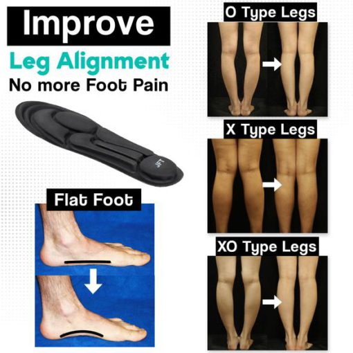 These insoles improve foot and legs alignment, enhances comfort for daily use and help ease stress and pain cased by XO type legs, flat feet, knee vagus.