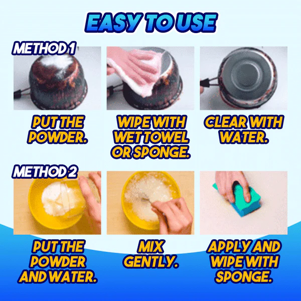 5x stronger cleaning powder, making kitchen utensil, stove, and sink look like brand new. Hassle-free tough stain removal that restore to its original shine.