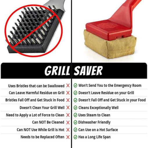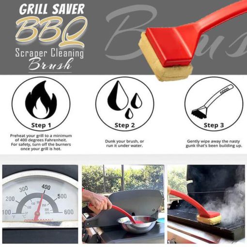- EASY AS 1-2-3: Does not have any metal parts and uses steam to clean and wipe away the grime, and it’s almost effortless to use. Heat your grill to a minimum of 400 degrees Fahrenheit (then turn off your burners), dunk your grilling cleaning brush in water, gently wipe off any buildup or residue.