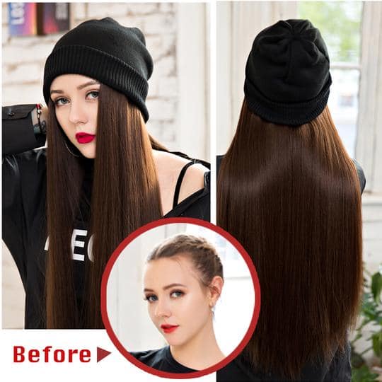 Hair Extension Beanie is a WINTER HAT that is SPECIALLY DESIGNED for a BREATHABLE and COMFORTABLE wearing of WIG. It has a HIGH-QUALITY SYNTHETIC HAIR EXTENSIONS that is BUILT-IN to a READY to WEAR BEANIE HAT for a STYLISH and WARMTH HAIR FASHION LOOK.