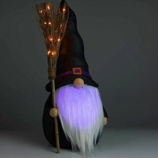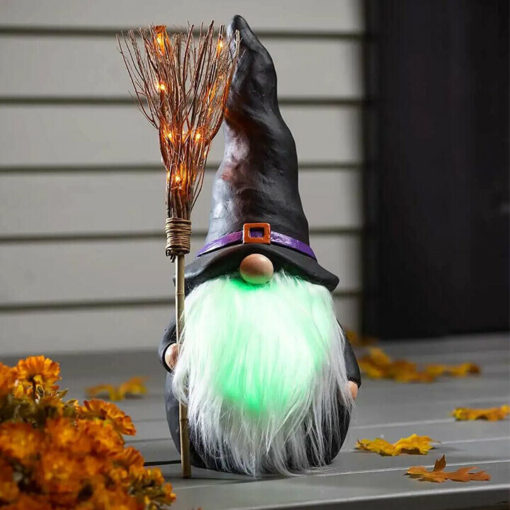 Let this whimsical Halloween Gnome with Lighted Broom and Color-Changing Beard greet trick-or-treaters and passers-by.
