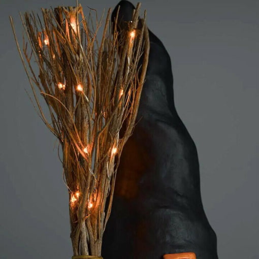 Wearing a crooked, oversized hat, he’s sure to capture attention with his color-changing tufted beard and sparkly lighted broom.