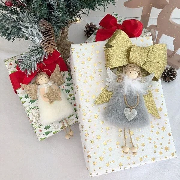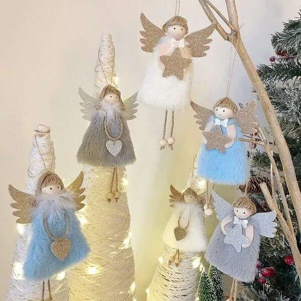 Each angel has been made with love, from high-quality Plush, Wood, Jute, Feather to ensure excellent quality. Dressed entirely in soft plush and hand adorned with beautiful shiny pendant and wings, this sweet angel will add a unique touch to your Christmas decoration or gifts. Natural material allows our ornaments to be light and delicate as they dangle from the twine. Each Angel is unique in her own way; however, they are all based on the same pattern.