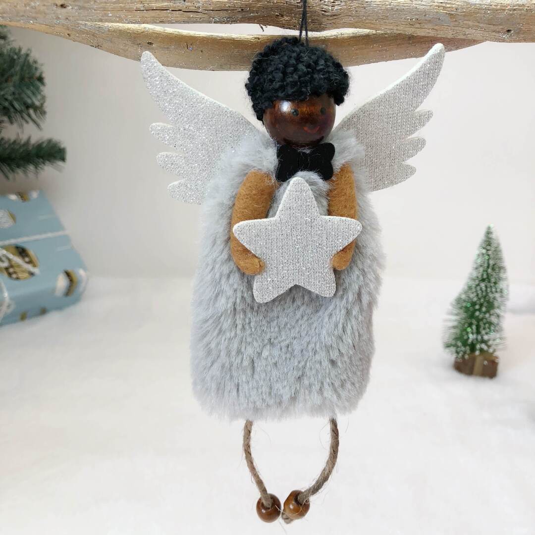 Each angel has been made with love, from high-quality Plush, Wood, Jute, Feather to ensure excellent quality. Dressed entirely in soft plush and hand adorned with beautiful shiny pendant and wings, this sweet angel will add a unique touch to your Christmas decoration or gifts. Natural material allows our ornaments to be light and delicate as they dangle from the twine. Each Angel is unique in her own way; however, they are all based on the same pattern.