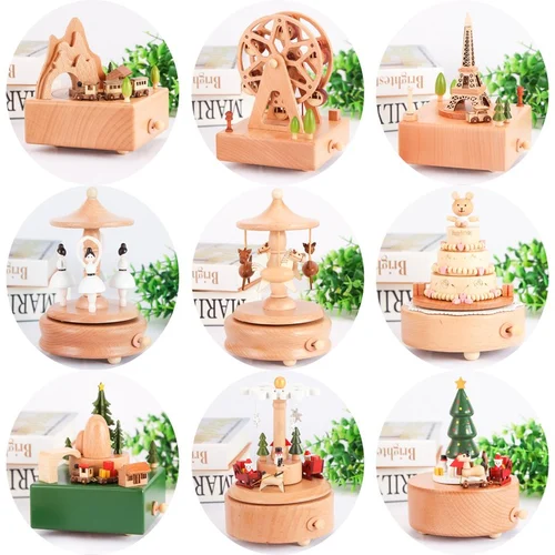 2023 Early Christmas Promotion-Handmade Wooden Rotating Music Boxes