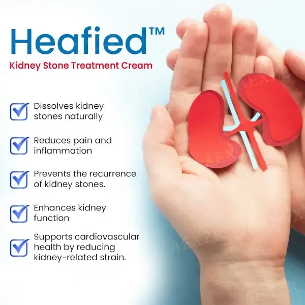 Heafied™ Kidney Stone Treatment Cream is designed with a unique blend of natural and clinically tested ingredients that work synergistically to dissolve kidney stones and prevent their recurrence. Unlike oral medications that may cause digestive discomfort or invasive procedures that carry risks, this topical cream offers a non-invasive, convenient, and painless solution. The advanced formulation penetrates deeply to target kidney stones while supporting the kidneys’ natural detoxification process.