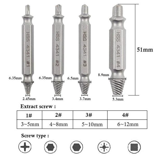 - Designed to remove stubborn, rusted, stripped, screws or bolts.
