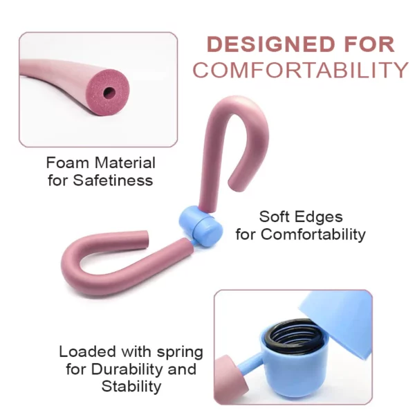 Thigh Master is used to training pelvic floor muscles strength, and adjust & tighten the thighs, buttocks, and lower abdominal muscles. By doing this routine, you can improve your core strength, stability, and control as well as enhance your appearance by toning up your butt muscles.