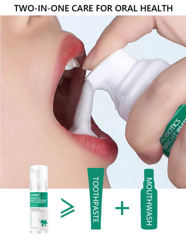 THIS ORAL REPAIR FOAM FROM HONXI CAN KILL 99.99% OF BACTERIA, ELIMINATE BAD BREATH, REMOVE TOOTH PLAQUE AND TARTAR, HEAL GINGIVITIS AND PERIODONTITIS, RELIEVE TOOTHACHE, PREVENT AND REMOVE CAVITIES, RESTORE TOOTH ENAMEL, STIMULATE THE FORMATION OF RESTORATIVE DENTIN, AND STIMULATE THE REGENERATION OF LOST TEETH