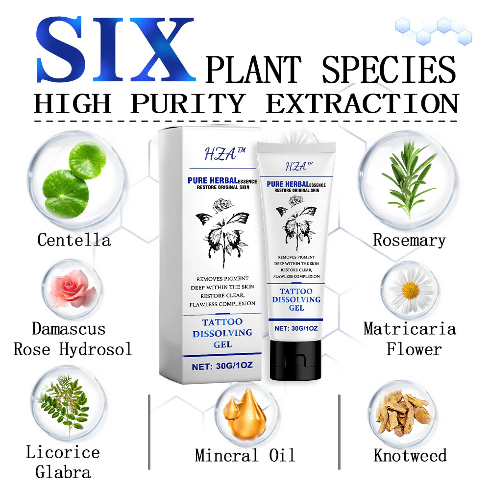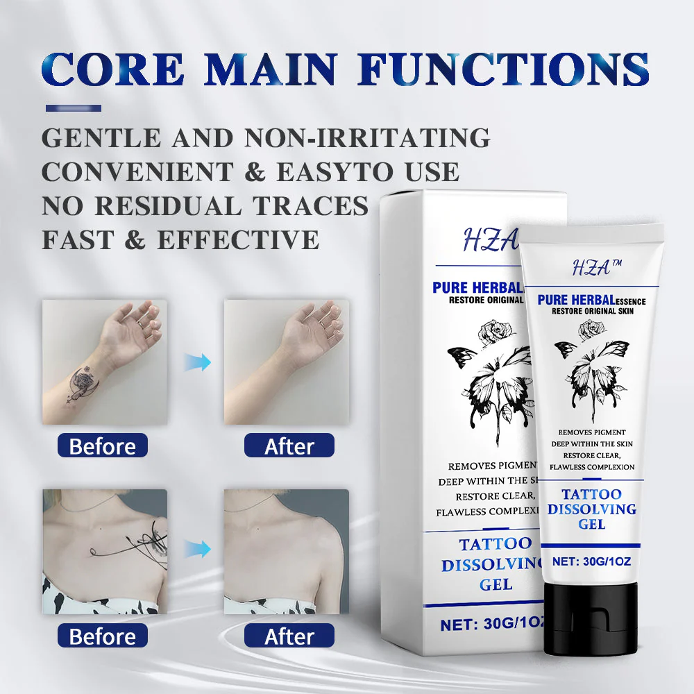 HZA™ Tattoo Dissolving Gel is a professional-grade tattoo removal product designed to help you remove tattoos from your body easilysafely and quickly. Whether you’re looking to remove an old tattoo, correct a bad tattoo decision, or simply want to change your look, HZA™ Tattoo Dissolving Gel has you covered.