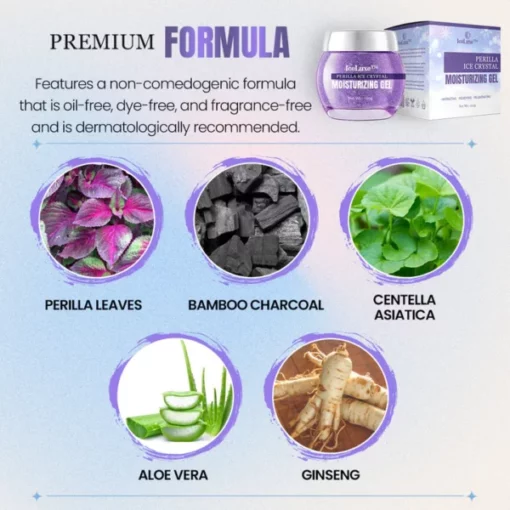 Experience the transformative power of IceLuxe™ Perilla Ice Crystal Moisturizing Gel. Our innovative formula is designed to improve and repair your skin, targeting stubborn dirt, excess oil, clogged pores, dark spots, and acne marks.