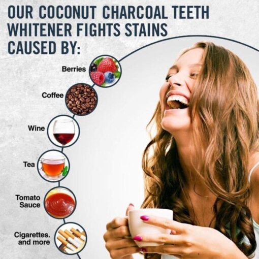 Using our products can remove breath and tooth stains so that your teeth become as bright as pearls. At the same time, it can gently protect tooth enamel and protect tooth health.【Remove Stains】Works safely and effectively to get rid of stains including coffee, tea, wine, tobacco and cigarettes. It can be used with general or Charcoal Toothpaste to better whiten your teeth.【Natural and Organic】Formulated with premium calcium carbonate, Activated Charcoal, and all other ingredients from the purest sources. No harm on Gums and Enamels. No harsh Chemicals, Fluoride free, Cruelty free and Vegan friendly.【Strengthen Teeth and Freshen Breath】Proven by American Dental Association to be safe dental products to remove calculus and gum sensitivity, also strengthens enamel. Food grade spearmint can ensure a freshened breath.