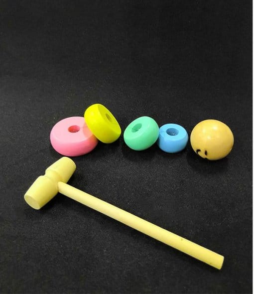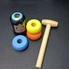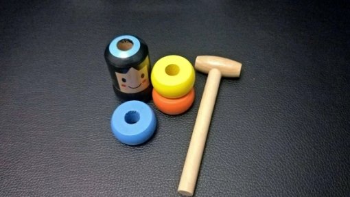 It moves as if the spectator watches CG animation. The magical Daruma jumps to avoid hammer. Even it is knocked down and collapsed, it magically re-shapes (re-builds).