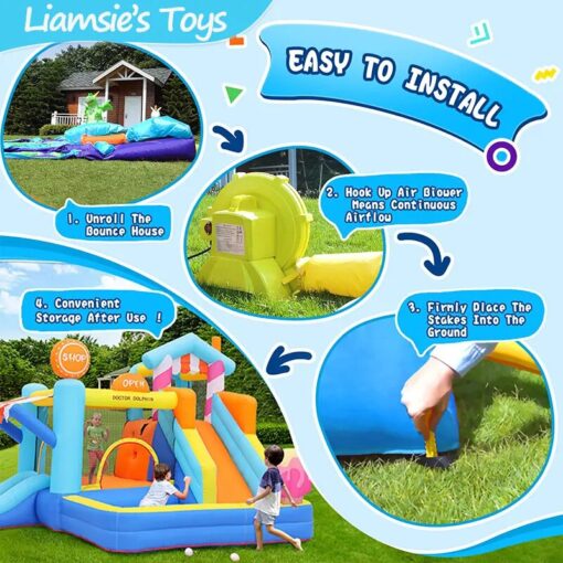 - Easy to set up and portability: The inflatable house can be set up quickly and effortlessly. It comes with an air pump that allows inflation in minutes. The lightweight design makes it portable so you can take the fun with you wherever you go, be it visiting friends, the park or a picnic.