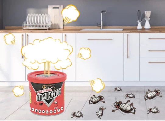 4. Wait for the insect fumigation to diffuse and cover the entire indoor space. Allow the insecticide to thoroughly spread and kill pests.