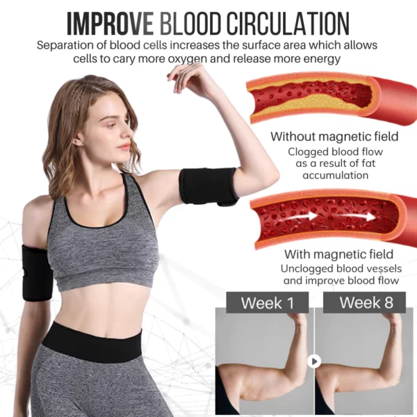InShape IONism Arm Wrap Trimmer is designed to improve blood circulation. It can help the body’s internal organs function better by increasing blood flow, which can improve hormone and metabolism systems, digestive systems, and fat cells. Additionally, this device has been proposed to have the ability to aid in the detection of localized physiological impairments by the subconscious mind, thus promoting the body’s natural healing process.