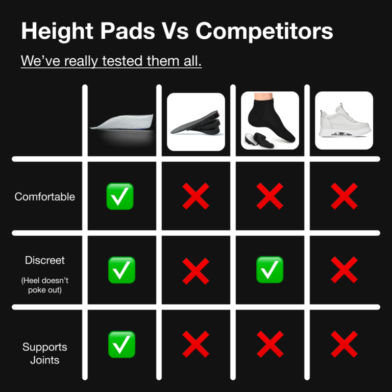 We’ve specially designed our height pads to be discreet in all shoes, so no one can tell where your height boost has come from!