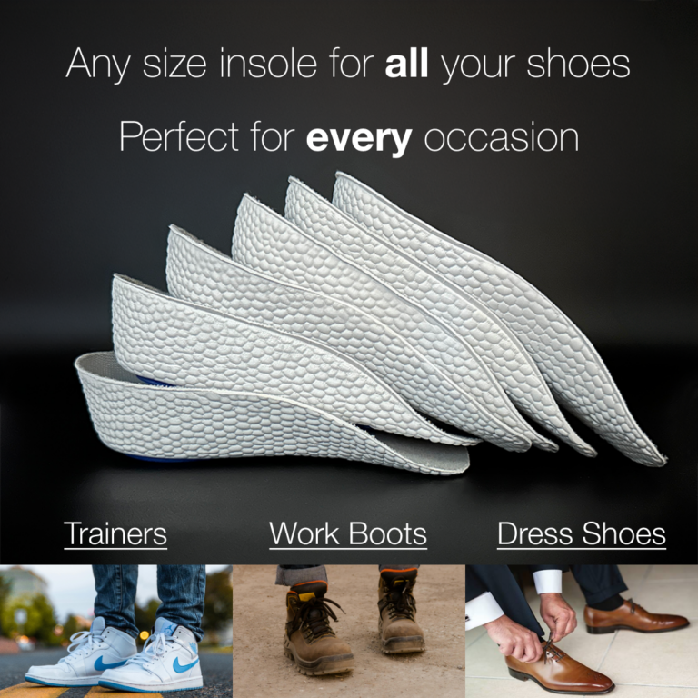 – 1 Pair of Height Boosting insoles in the size of your choice